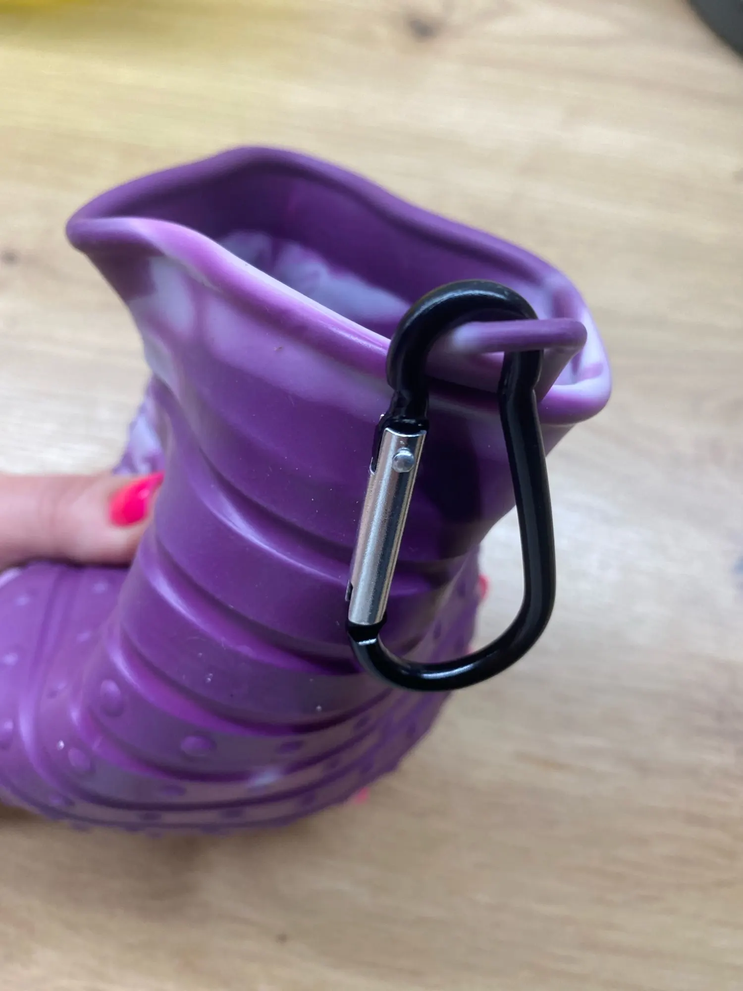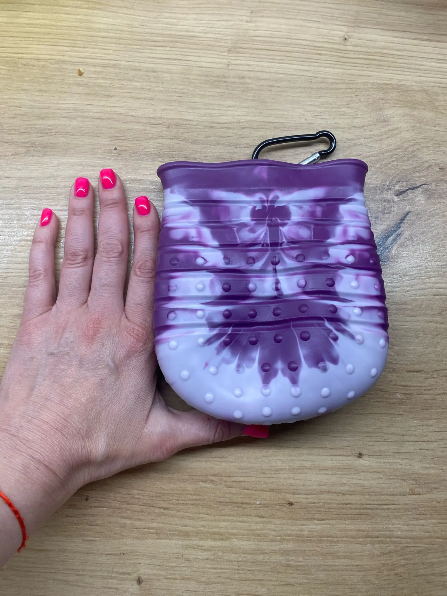 I ordered it in blue and it arrived in purple. It's bigger than I expected, but we still use it anyway, for now, just to clean the paws.